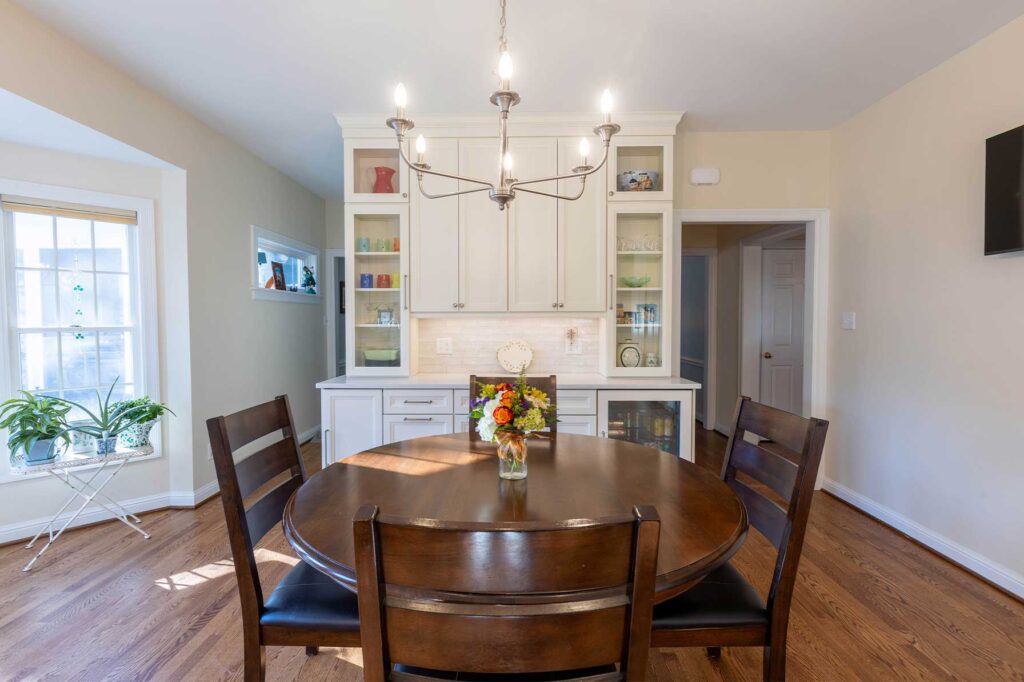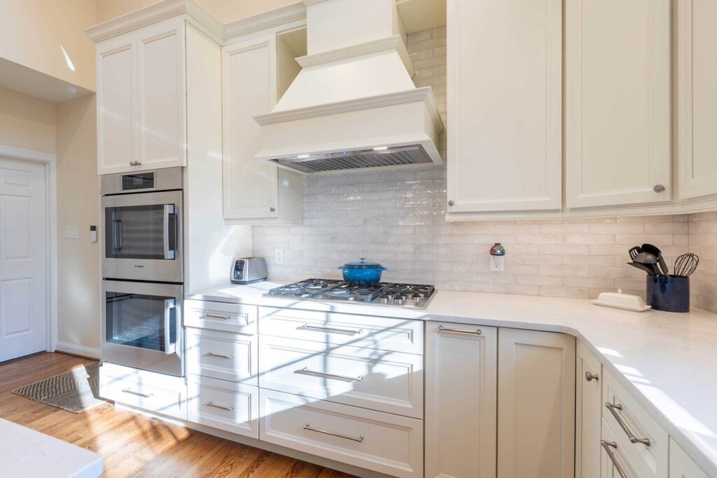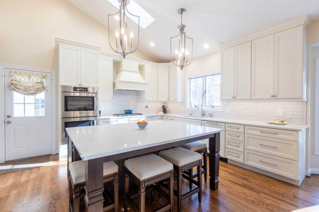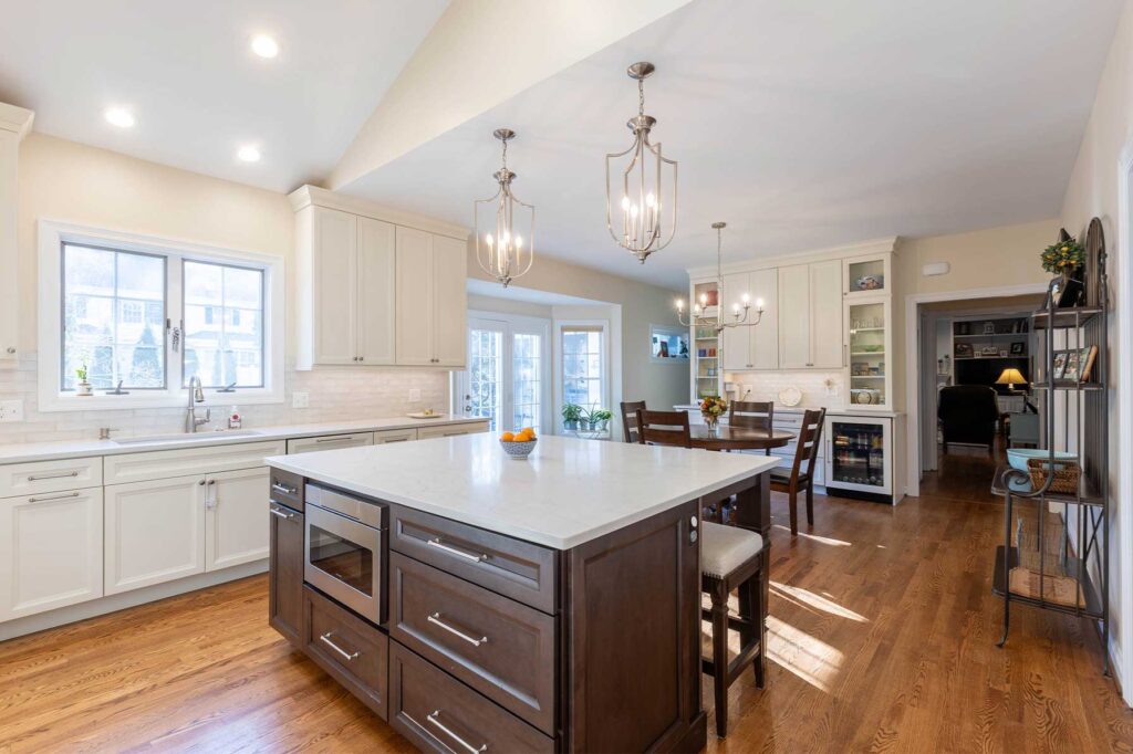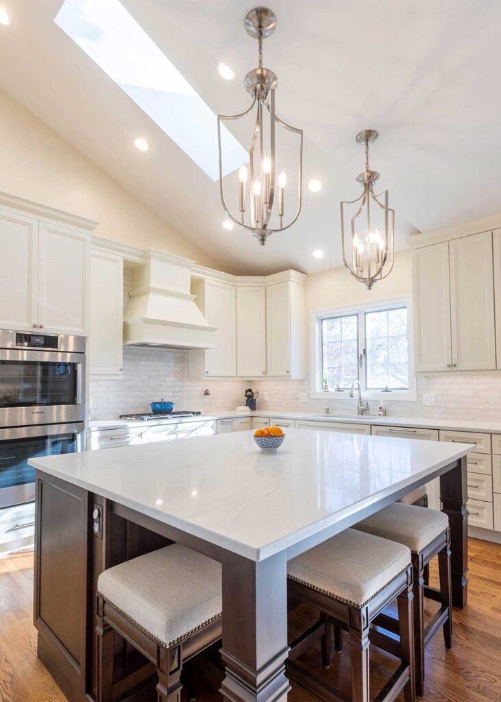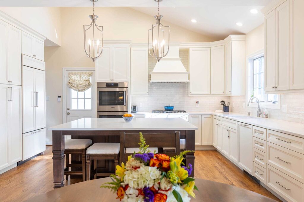 This kitchen strikes the perfect balance of contrast and warmth. White cabinetry brightens the space, while the dark wood island grounds it with richness and depth. Together with the sleek appliances, it creates a look that feels both cozy and elevated.