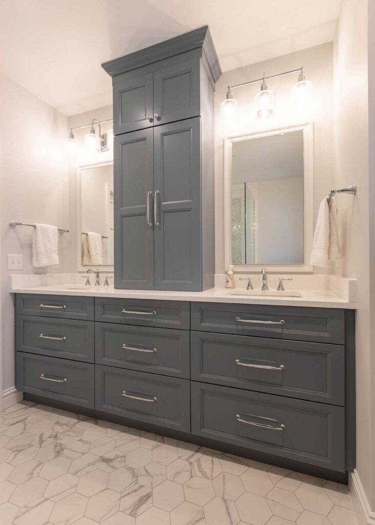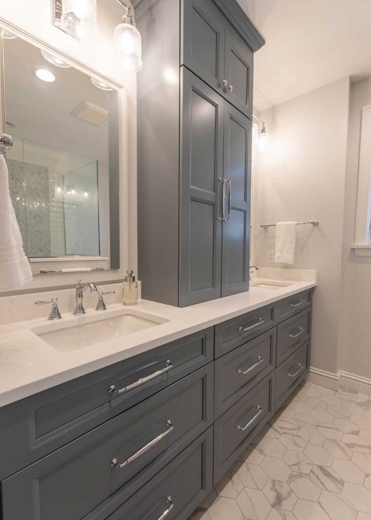 These bathroom brings an elegant flair to the mix, One with gold accents that add warmth and sophistication. And the other with soft lighting creating a timeless atmosphere, turning a simple space into a luxurious space.