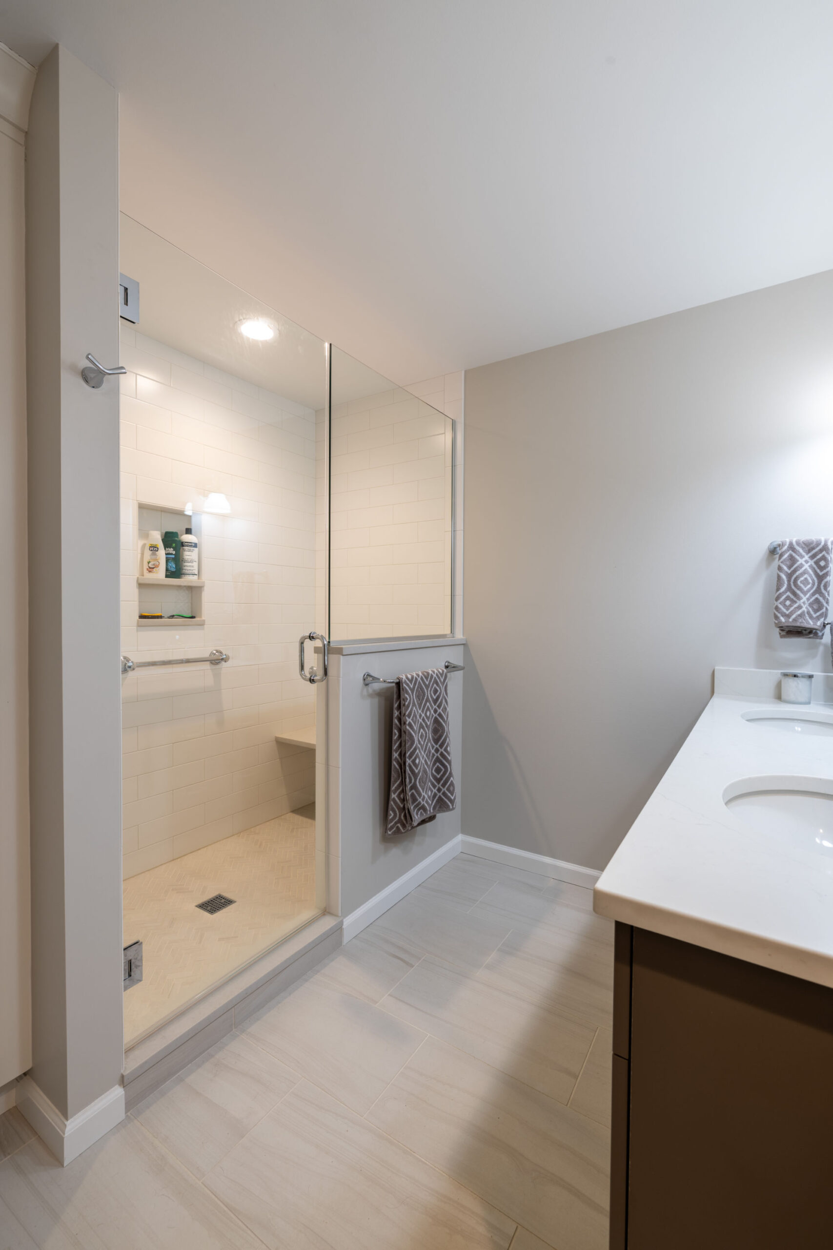 These clients came to us with major changes in mind. They were seeking an aging in place-friendly design and we delivered. A bathroom that easily and safely accessed and living spaces that are comfortably negotiated both on foot and with physical aids. Roeser Home Remodeling delivered a newly remodeled bathroom, kitchen, utility room, bedroom, and utility room.